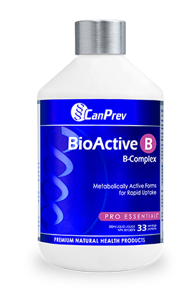 CanPrev’s BioActive B is a complete source of B vitamins your body needs to support energy, immune function, liver health, metabolism and countless other metabolic processes that are essential for optimal health. They are delivered in their preferred, bioactive forms to help keep pace with demand. These body-ready B vitamins are especially needed during times of physical and mental stress.
