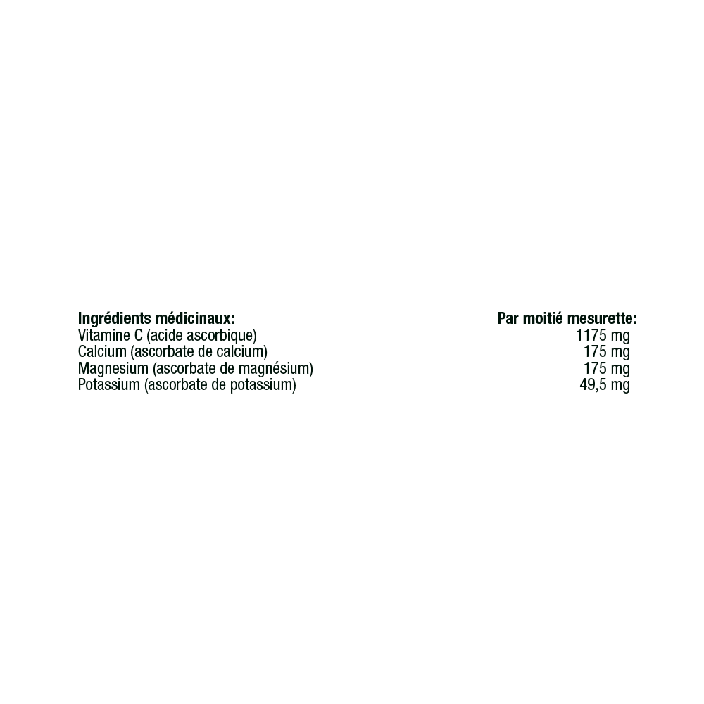 Medicinal Ingredients: Each half scoop (2.9 g) contains: