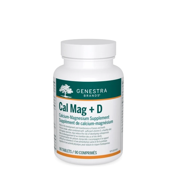 Cal Mag + D provides calcium and magnesium to support bone health, with added vitamin D to improve calcium absorption and utilization.