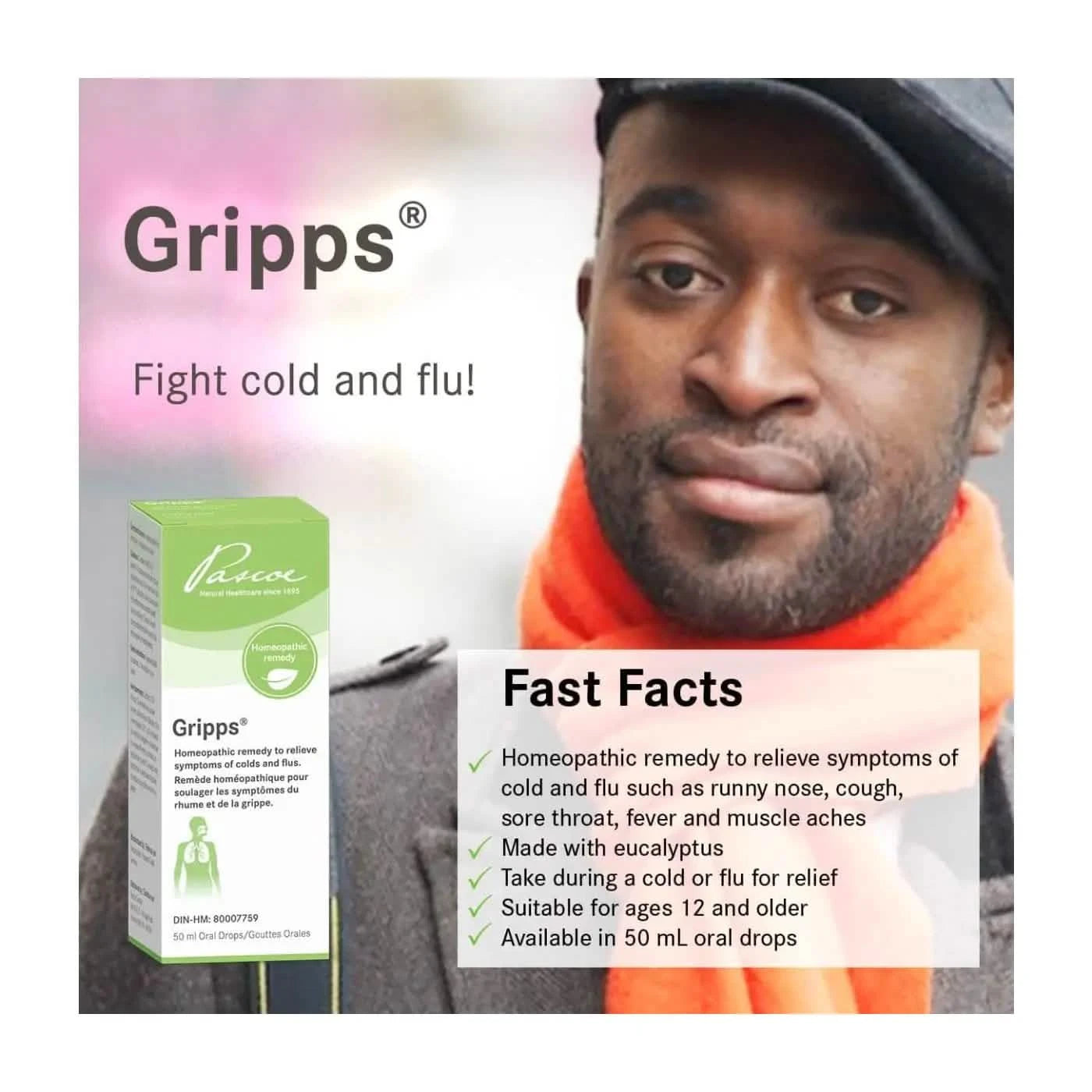 Gripps Drops from Pascoe are a homeopathic remedy made with eucalyptus, to help relieve symptoms associated with the common cold and flu, such as sore throat, runny nose, cough, fever and muscle aches. The drops also work to help your body heal faster and fight the viral infection.