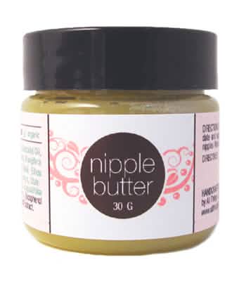 This Nipple Butter is a rich, natural ointment made with organic Cocoa, Shea & Mango butters, as well as healing lanolin. It soothes, nourishes and moisturizes sore and cracked nipples.