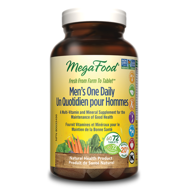 MegaFood® Men’s One Daily is specifically formulated without iron to support the health and wellbeing of men. (Iron is not recommended for men unless specifically directed by their healthcare practitioner.) The convenient, once-daily multi nourishes the whole body and is gentle enough to take on an empty stomach*. FoodState® B vitamins assist with already healthy cardiovascular function, healthy energy production and nervous system health, while 400 IU (10 mcg) of FoodState® Vitamin D supports already healthy mood. Zinc, an essential mineral, supports prostate health.
