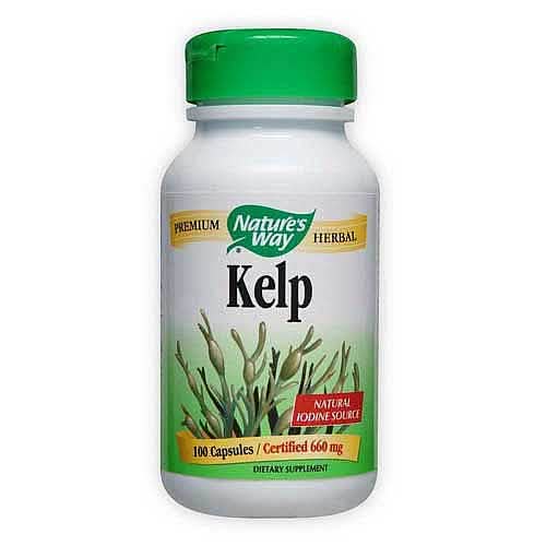 Kelp is a nutritionally-rich seaweed which grows in deep ocean water away from heavy metals and toxins. Kelp supplementation helps in the function of the thyroid gland. Nature's Way uses the whole dried plant in their formula.