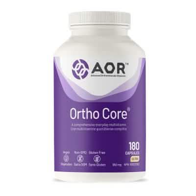 Ortho Core contains a broad spectrum of vitamins, minerals and phytonutrients. It includes vitamin A with optimal doses of various carotenoids. It contains B vitamins in their active forms, and vitamin C along with various bioflavonoids. It also contains all 8 vitamin Es, all of which have important roles and balance each other. Minerals in Ortho Core include zinc and copper in a balanced ratio, and important trace minerals such as boron, silicon and vanadium. To give the formula an extra edge, Ortho Core contains a number of health-enhancing phytonutrients backed by science including grape seed extract, EGCG from green tea, R+ lipoic acid and coenzyme Q10. AOR's Ortho Core contains superior forms of nutrients with balanced dosages based on scientific studies, ensuring that the nutrients work synergistically toward optimal health.