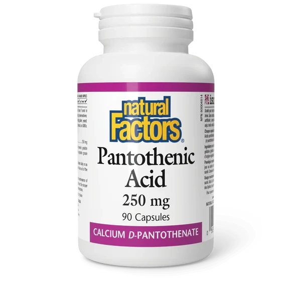 Natural Factors Pantothenic Acid helps in the metabolism of fats, proteins, and carbohydrates and converts them into energy in the body. It is also known as the anti-stress vitamin as it plays a vital role in the production of adrenal hormones and in the formation of antibodies.