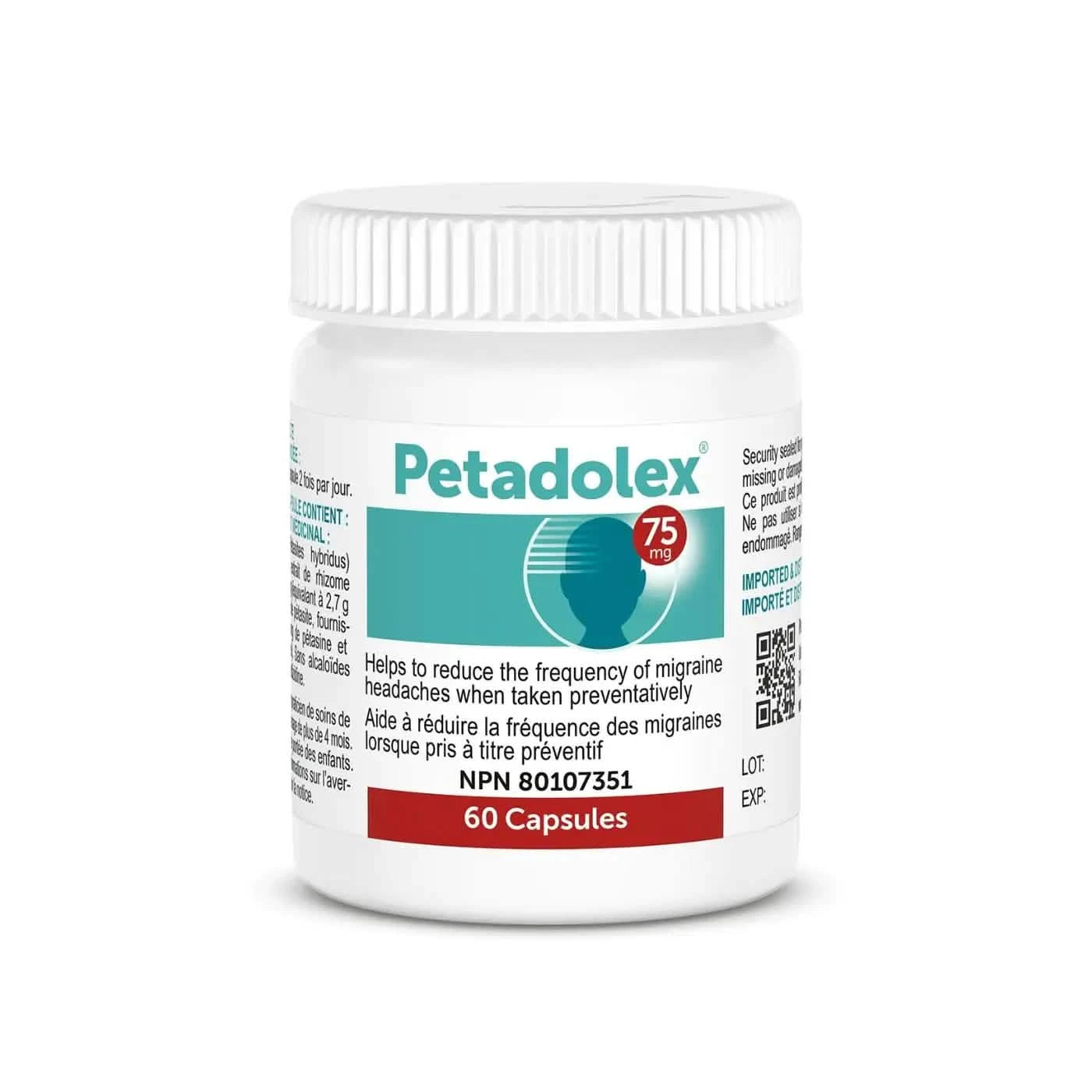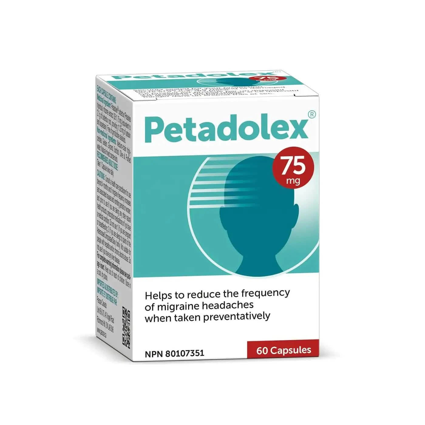 Medicinal Ingredients: Petadolex butterbur (Petasites hybridus) rhizome extract (36:1) 75 mg (equivalent to 2.7 g of butterbur root, providing 11.25 mg of petasin and isopetasin). Free of pyrrolizidine alkaloids.