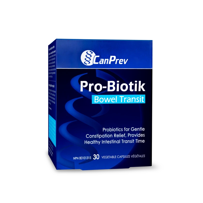 CanPrev’s Pro-Biotik Bowel Transit is a convenient, shelf stable, one-a-day probiotic with a select strain of Bifidobacterium. This clinically proven strain promotes bowel movement regularity, relieves constipation, and encourages healthy digestion by improving bowel transit time.