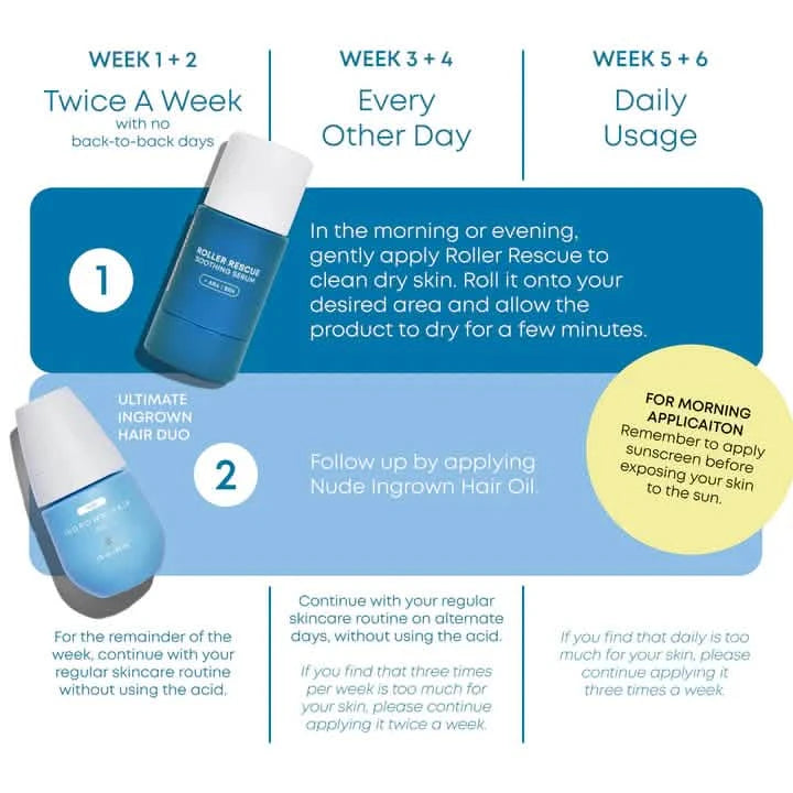 Apply serum whenever you experience ingrown hairs, bumps, or redness. For best results, incorporate it into your daily routine to help reduce the occurrence of ingrown hairs.