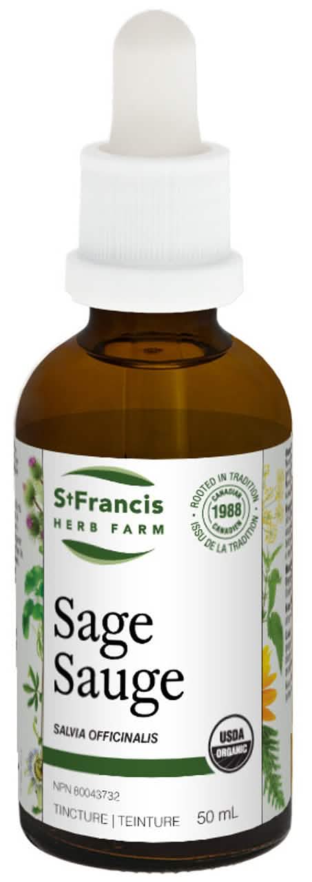 Medicinal Ingredients (per 1 ml): Sage leaf (Salvia officinalis) 250 mg QCE (1:4). Non-Medicinal Ingredients: Grain alcohol, Distilled water. Sage leaves are Certified Organically Grown.