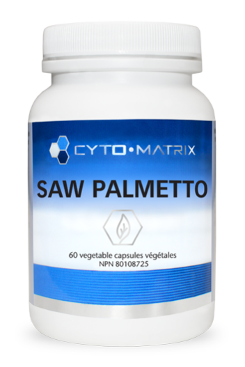 Saw Palmetto from Cyto-Matrix contains 250mg of saw palmetto fruit extract per vegetable capsule, standardized to contain a minimum of 45% fatty acid content. A highly potent extract of Serenoa repens, designed to support men’s prostate health and lower urinary tract symptoms. Sustainably sourced, traceable, and GMO free.